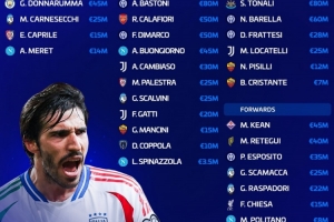 意大利队总身价8.545亿欧,巴斯托尼、托纳利8000万欧队内最高