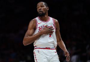 体育资讯3月22日讯 NBA常规赛,火箭主场123-122险胜热火。赛后杜兰特接受采访。