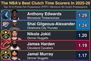 下一篇: 联盟最强二人组?约基奇和穆雷本赛季均多场50+ 历史第四对