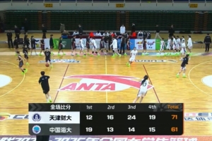 末节决战,李依坤上来带领中国海大咬住比分,随后中国海大连续失误,陈雨欣继续内线取分,夏荣三分再中,天津财大9-0再次领先到双位数领先,张荣荷虽然三罚全中再追分,但时间所剩无几,最终天津财大71-61力克中国海大。