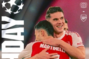 阿森纳发布欧冠客战勒沃库森海报:约克雷斯、马丁内利出镜