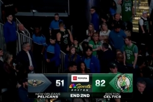 体育资讯4月11日讯 NBA常规赛,凯尔特人半场82-51领先鹈鹕。