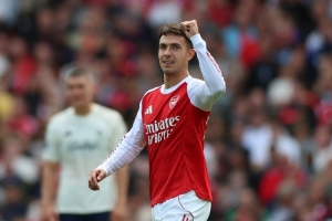 队友们也察觉到了苏维门迪的焦虑与紧绷:上半场,约克雷斯点球破门前不久,赖斯、斯凯利与加布里埃尔均上前安抚了他,队友很清楚,苏维门迪急需支持。