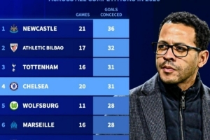 体育资讯3月18日讯 在欧冠淘汰赛次回合,切尔西0-3不敌巴黎。以下为自2026年各项赛事丢球榜,其中切尔西31球第四。